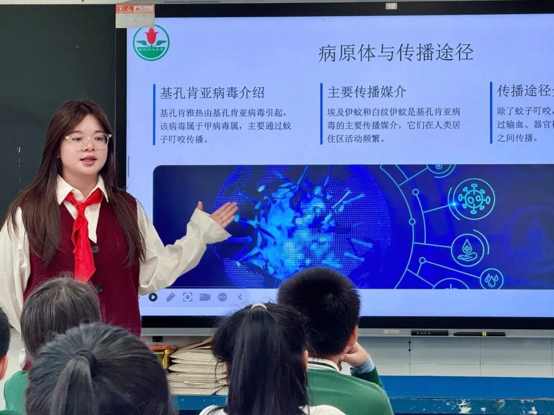 各学校(幼儿园)通过“小手拉大手”活动推动防控知识进家庭,将防线从校园延伸至家庭。通过发放电子宣传单、举办健康讲座、在班级群及时发布预警、推送科普文章、视频等方式,成功构建了“学校传授知识、学生带回家庭、家长参与防控”的良好互动模式,凝聚了家校共防的强大合力。
