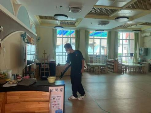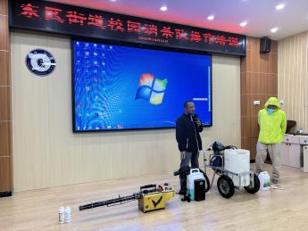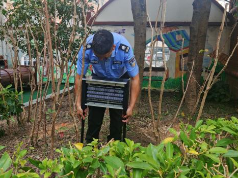 科学消杀:44所学校均组建了校园消杀队,配备专业消杀器械及药剂,由街道专业消杀队定期对其进行培训。每周开展1-2次的重点区域专业消杀,配置和加设550余盏高效灭蚊灯,构建“动态消杀+静态防控”双重屏障,实现了消杀无死角。