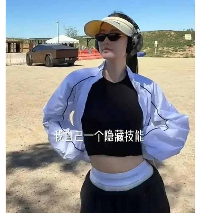 更让人意外的是在射击场的照片:前一秒的她还是温柔画风,后一秒戴上护具举枪射击,神情专注,姿势有模有样。击中目标后露出的那种带着点小骄傲的开怀大笑,让人看到了她不同于荧幕形象的、充满活力的一面。